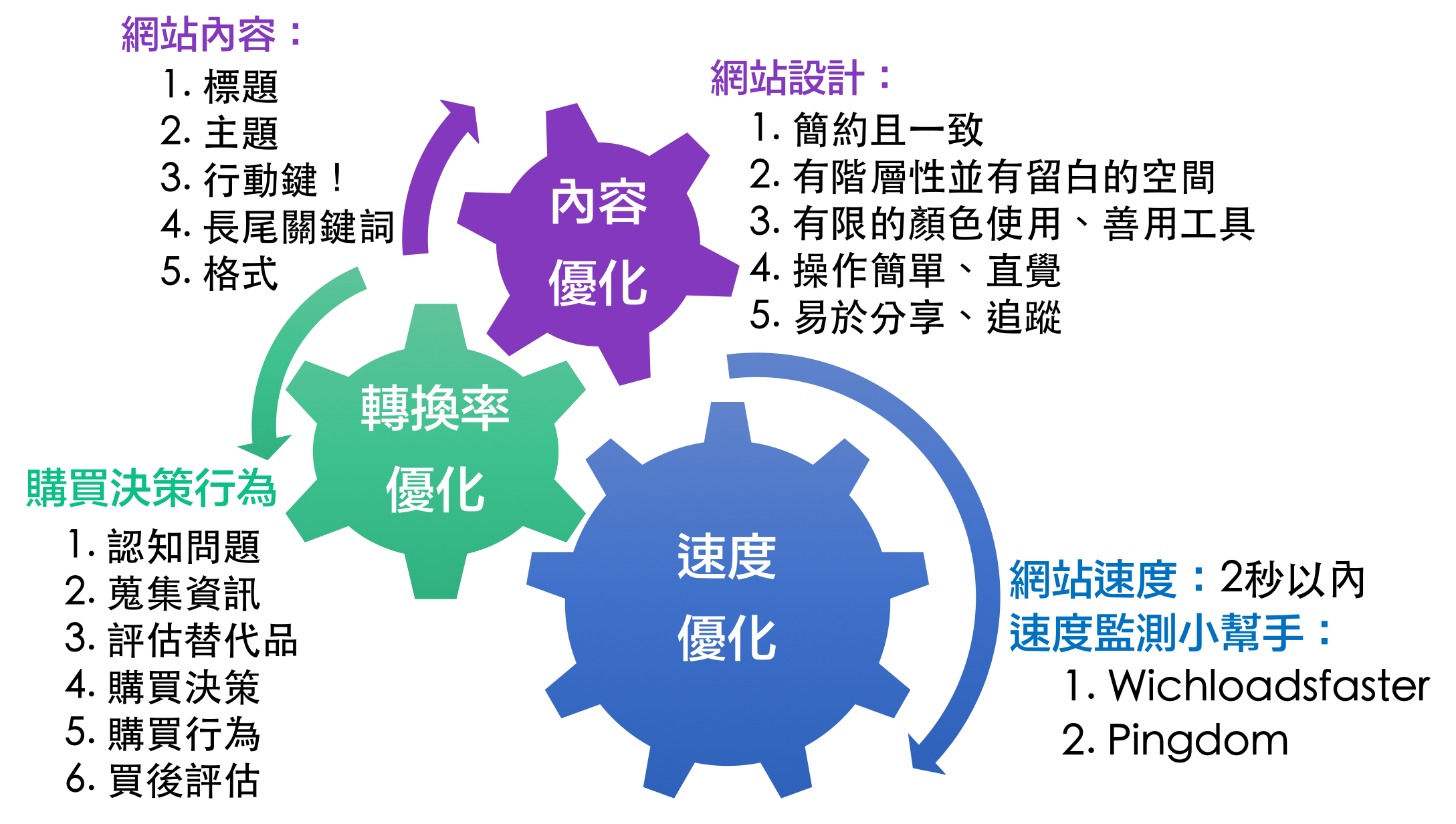 最后,就以上图作为本篇文章重点的总结,希望学会优化的技巧之后的你,能够增加你的网站排名、带来网站人气,并有效将这些流量转换成营收哦!